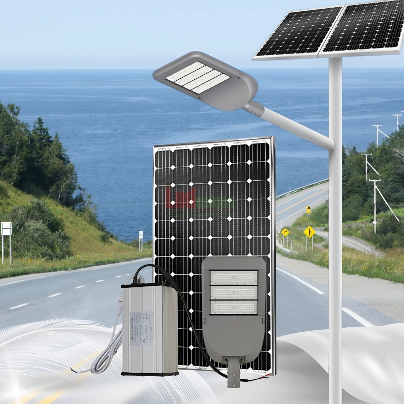 Đèn đường năng lượng mặt trời 200W là lựa chọn hoàn hảo cho các khu vực yêu cầu chiếu sáng mạnh mẽ, như đại lộ, khu công nghiệp, hoặc các công trình quy mô lớn.