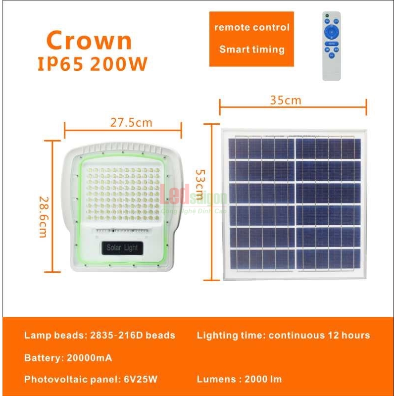THÔNG SỐ CHI TIẾT SẢN PHẨM ĐÈN PHA NĂNG LƯỢNG MẶT TRỜI 200W