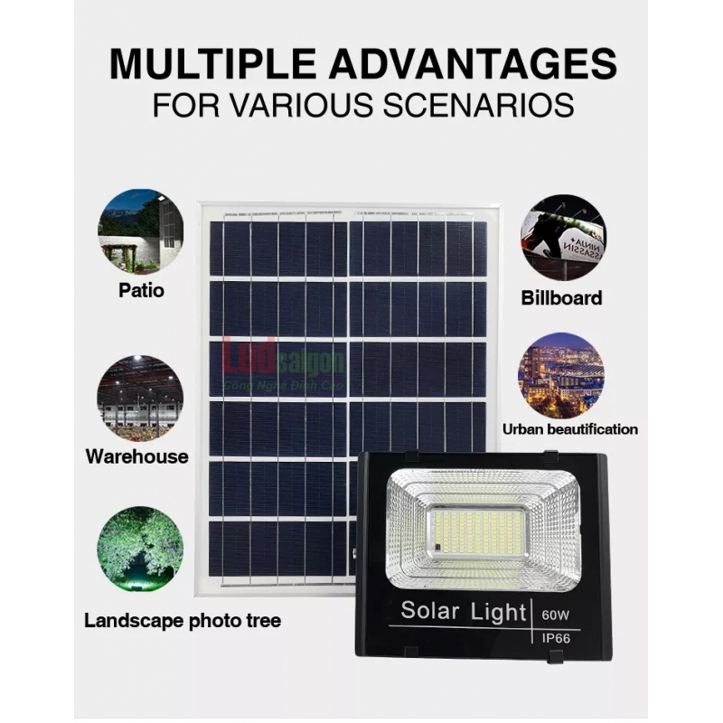 Ưu điểm của đèn pha Led năng lượng mặt trời 60W phân phối tại Ledsaigon: