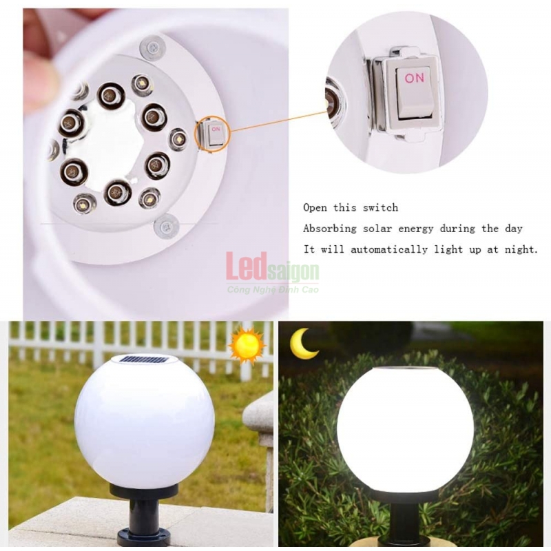 - Ban ngày, đèn không sáng, chế độ sạc pin tự động được thực hiện. Ánh nắng mặt trời được hấp thụ qua các tấm panel năng lượng mặt trời sau đó được lưu trữ trong pin sạc.